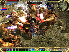 | キャラクターデータをローカルに保存しているので,チート問題は避けられない。マルチプレイのときはくれぐれも慎重に | 自分が倒れると,その場所に墓石が立つ。この場所に帰還するとデスペナルティが軽減され,Epic以降のレベルではそれなりの違いがある | ハデス編は一つのActのみだが,サイドクエストも充実しているので長く遊べる。画面は,幽霊の弓兵NPCを連れて一斉射撃している最中 |