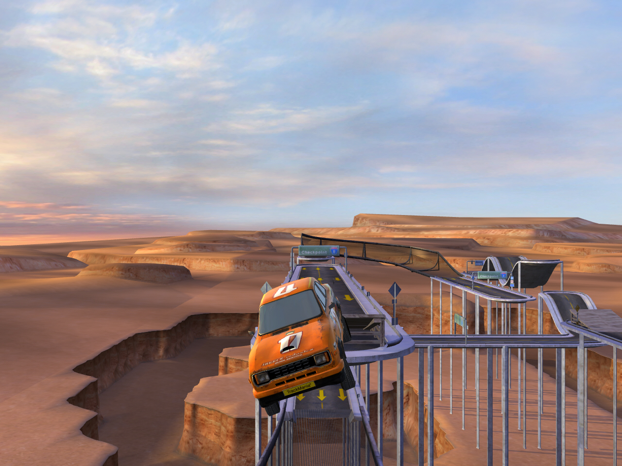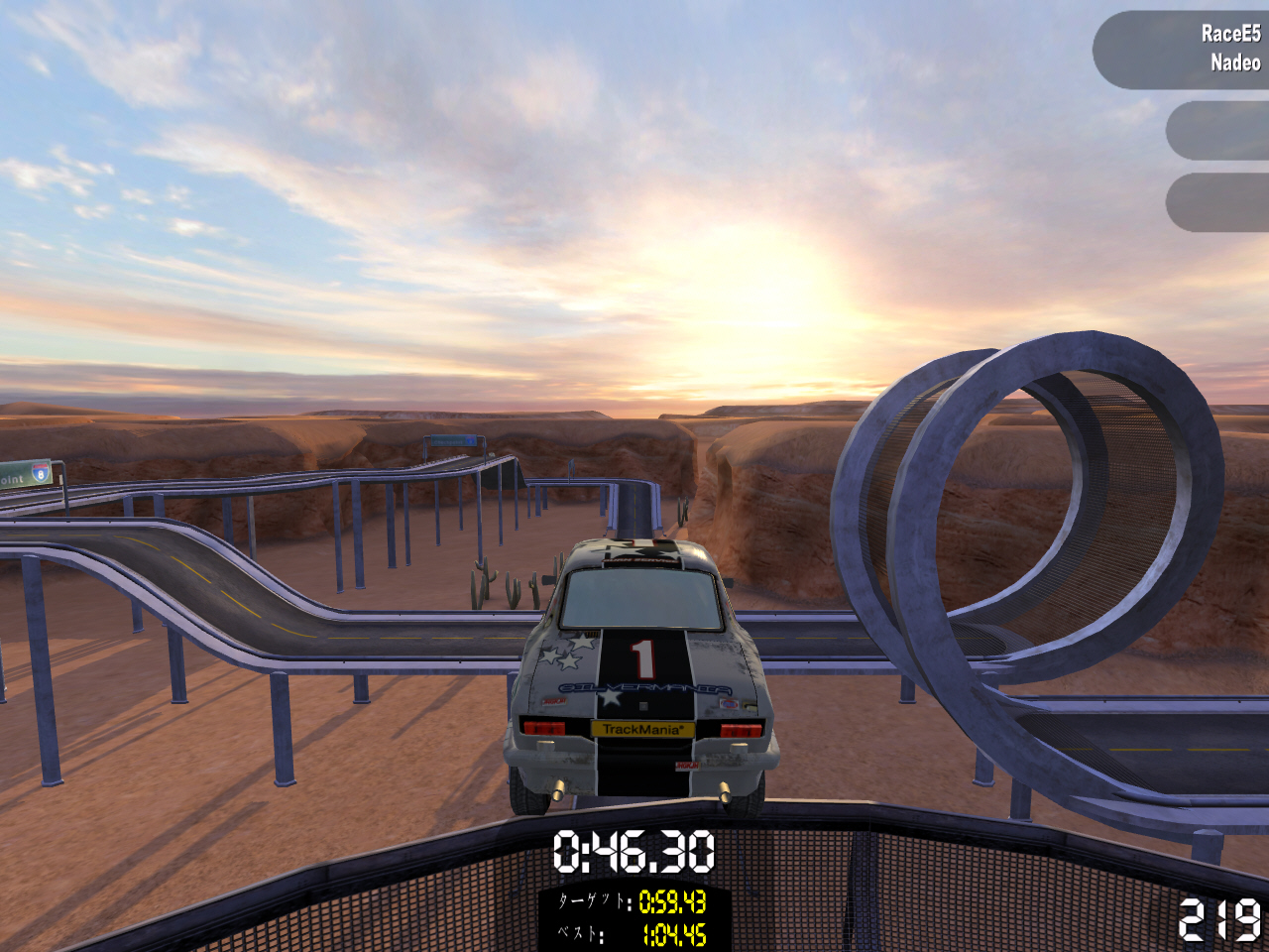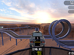 アメリカの砂漠地帯や,グランドキャニオンの中にコースを設営している感じの「スピードステージ」。コースはガードレールのある舗装路面ばかりなので,普通に走るぶんにはコースアウトの心配がないせいか,無理な走りをしてしまいがち。ジャンプの着地時にコースがなくて転落することも多く,プレイヤーの心理を逆手にとった意地悪なレイアウトが多い。大ジャンプ,360°ループがあるのも,このステージの特徴である。