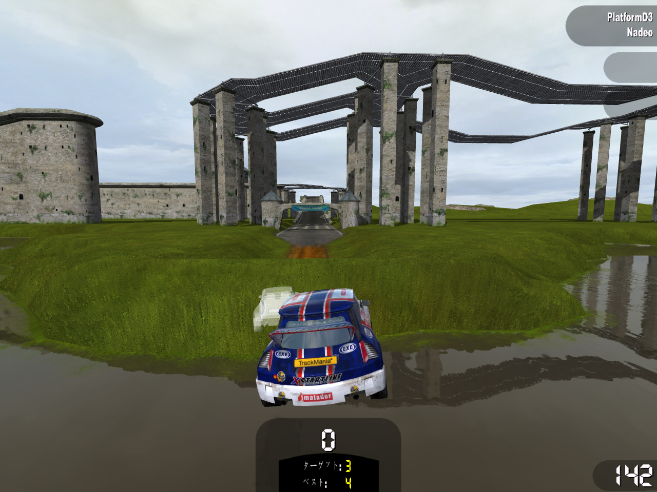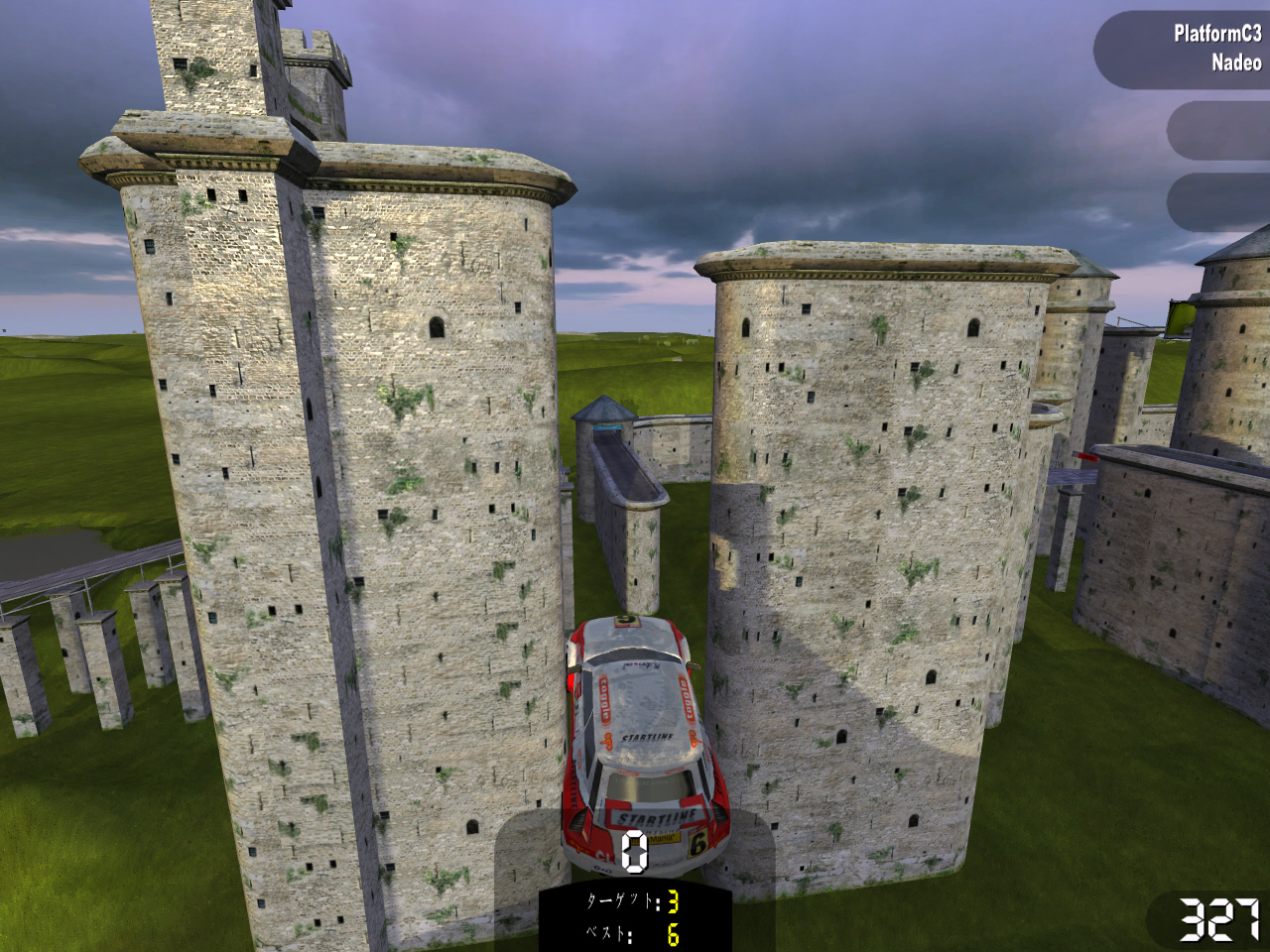 | 「プラットフォーム」チャレンジでは,泣きそうになるほど難しいコースが数多く登場する。通過できる走行ラインは分かっているのに,まぐれでしか通過できなかったりと本当に泣きたくなってくる。かなりシビアな部分もあるので,覚悟してトライすべし |