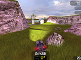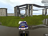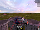 | ジェットコースターかと勘違いしてしまうほど,狭苦しいスペースに階層を多用してレイアウトされたコースも登場する | 一番,扱いにくいアメリカン・カー。速度を落とさずにコーナーリングしようとすると簡単にインリフトしてしまう | ラリーステージではコースが途切れて,草地の中を走ることも。コースが分からなければ,まずはライバルカーの後を追おう |