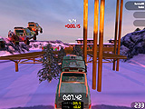 寒々とした日本の雪国がモチーフの「スノーステージ」は,日本家屋を彷彿させる板張りのコース。激しいアップダウンあり,直角コーナーあり,逆バンクありで非常にテクニカルなレイアウトだ。コースがあってないような広大な雪上&氷上を走るところもあるが,氷上ではステアリングを切ってもまっすぐ進み,ブレーキをかけてもどんどん進み続けるといった“どうにもならない恐怖感”を味わえる。