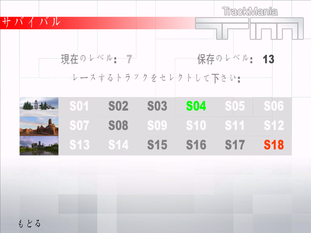 面白いのが,実は全18コースを走らなくてもいいというシステムだ。レベル1のレースから挑戦していくわけだが,次に走るコースはランダムに選ばれた2コースから選択していく。そのため,運が良ければ自分の自信のあるコース,苦手なコースを選択できるのだ。