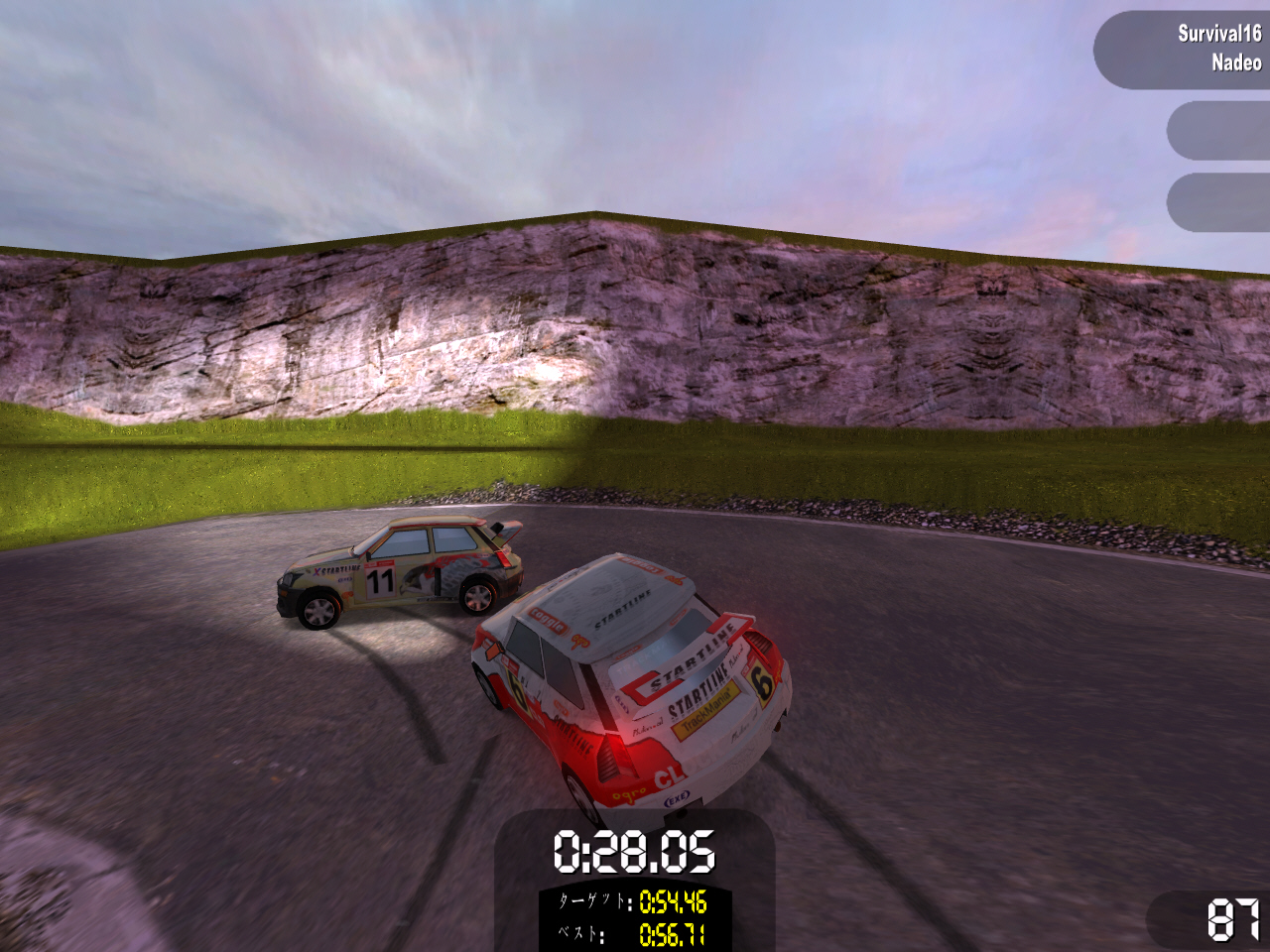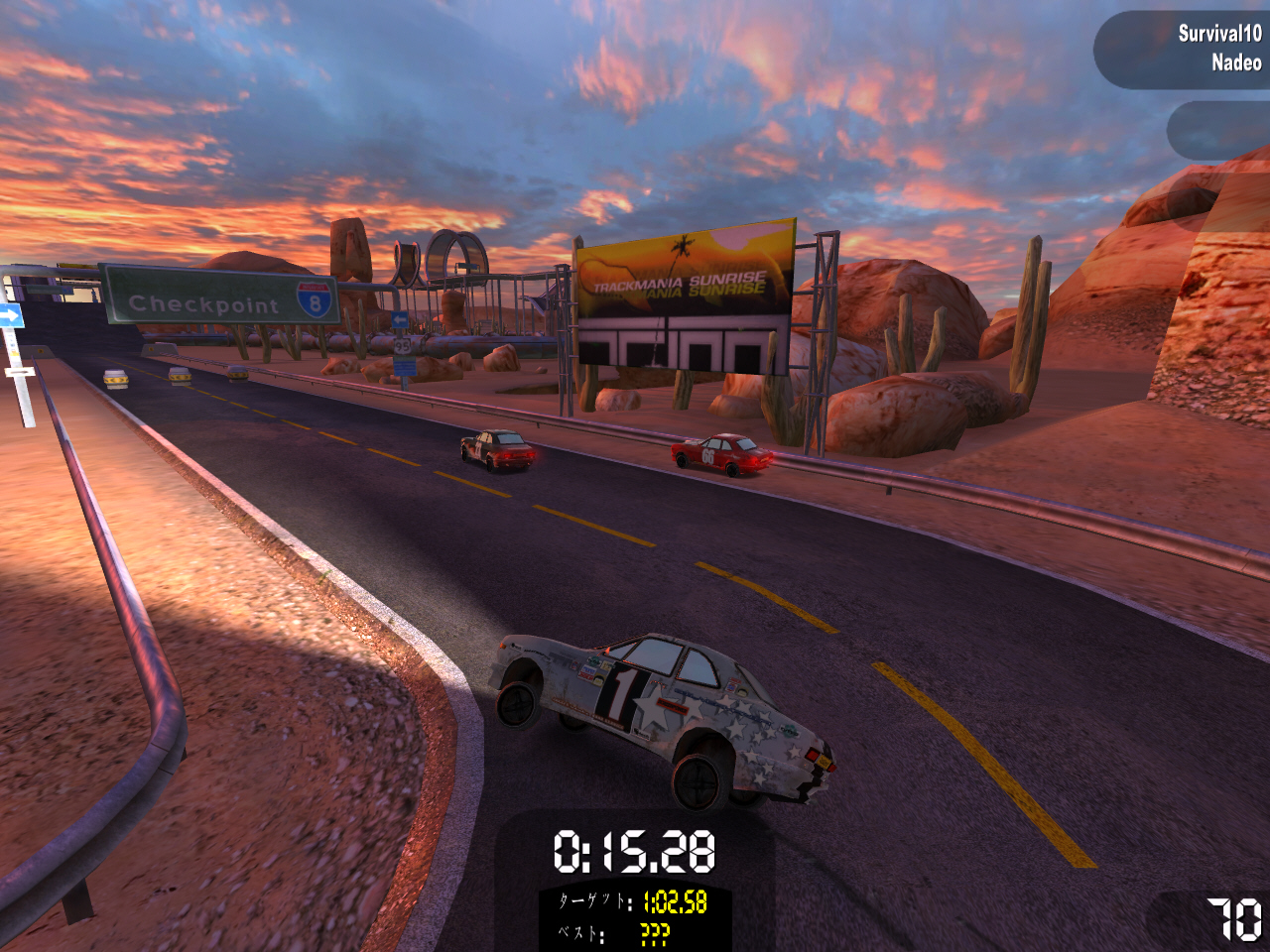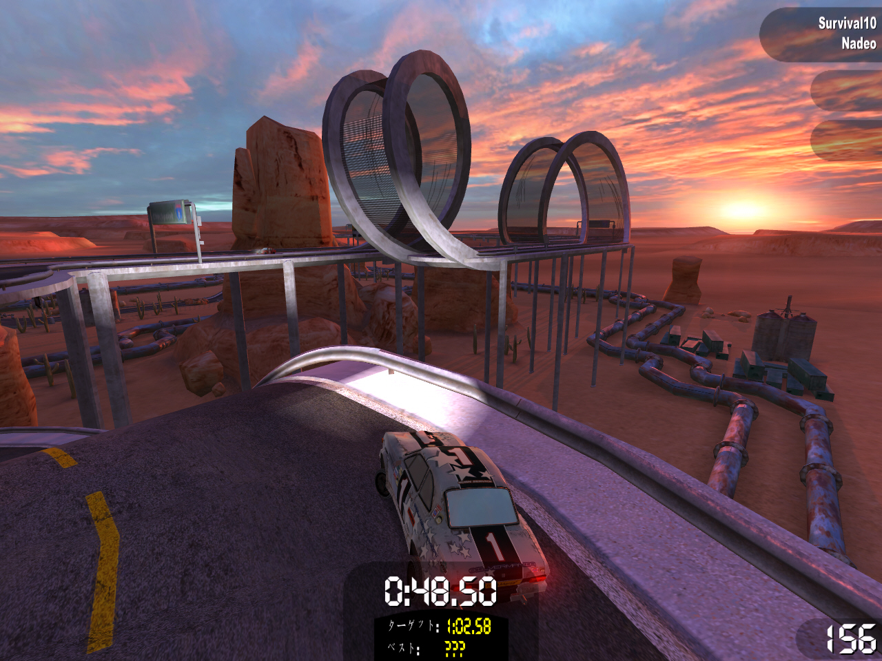TMSEには「クレイジー」チャレンジというものがあったが,これに対してTMOでは「サバイバル」チャレンジが用意されている。筆者はこれが非常に気に入っている。3台のライバル車と全18コースのレースを順番に戦っていくのだが,最下位になった時点でゲームオーバーとなり,再び最初のレースから挑戦することになる。