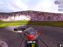 使用するクルマは往年の名車であるルノー 5 Maxiっぽい匂いのするラリーカー ターボ2。さすがはラリーカー,加速&ブレーキ性能も高く,ハンドリングはクイックなのでコース内をキビキビ走れる。ただし,本物のラリーカーのような挙動は微塵もなく,ラジコンカーを走らせてるような挙動だ。カウンター(逆ハン)を当ててドリフトをコントロールするような走りが,できないのが残念なところか。