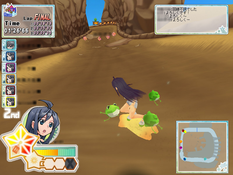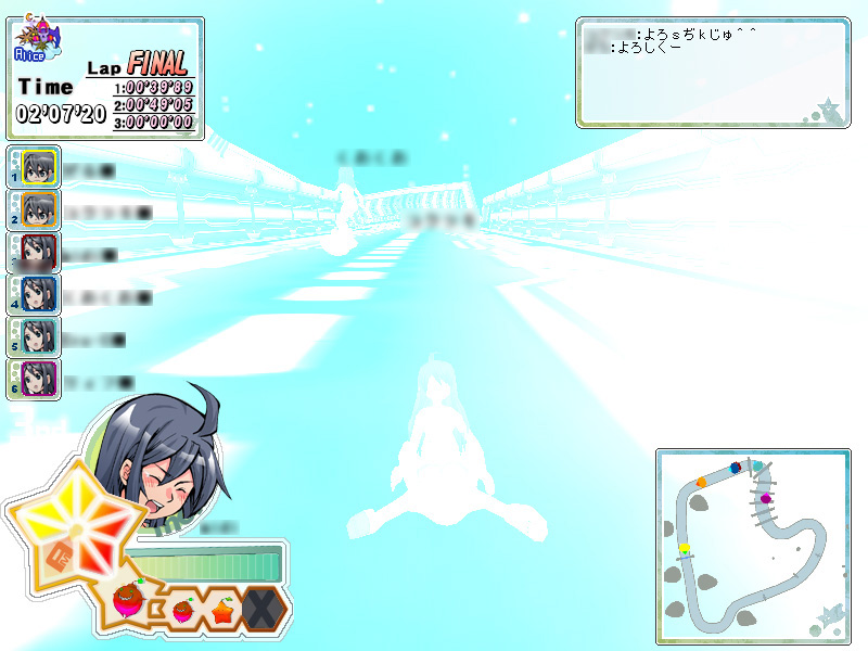最後に全体的な感想を述べておこう。カジュアルレースゲームとしてのバランスは非常に良くできている。それこそ「マリオカート」が好きな人であれば,楽しく遊べるはずだ。また,それなりの人数が遊んでいる様子で,なかなかのにぎわいを見せているのも,対人戦がメインのゲームであるだけに好印象だ。レースゲーム好き,そして“萌え系”好きな人になら,安心してオススメできる作品といえるだろう。個人的には,せっかくキャラクターを作ったことだし,今後もしばらく遊んでみようかと思っている。