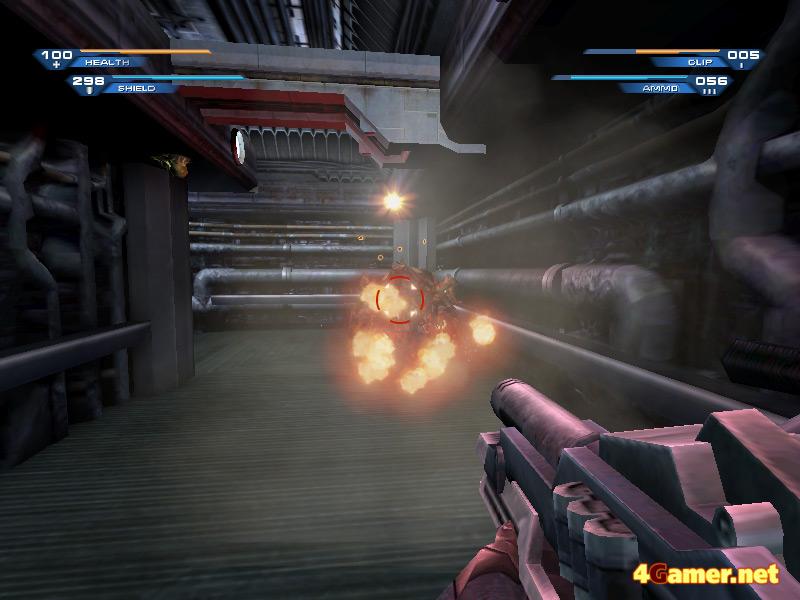 個人的に最も気に入ったのは,ショットガンのサブ攻撃。メイン攻撃に比べてサブ攻撃は散弾の拡散範囲が広くなるのだが,オマケ(?)として着弾箇所に火がつくのが特徴である。この二次的な火炎攻撃も含めると近距離での殺傷力は抜群で,屋内など狭い空間が戦場の場合は,この武器だけあれば,まず問題ない。
