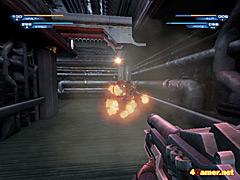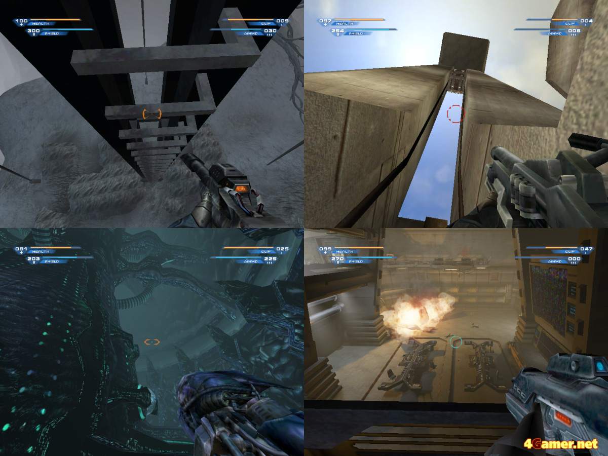 まあ,対戦モードがないのは当然といえば当然で,対戦に特化したスポーツ系FPS「アンリアルトーナメント」シリーズが分家として存在しており,本家で無理して対戦モードを搭載する必要はないのだろう。対戦モードをつけるぐらい手間はかからないだろうと思う人もいるかもしれないが,対戦用のステージはシングルプレイ用のステージを100%そのまま流用できるわけではないし,練習相手となるBOTの思考ルーチンを搭載する必要もある。それやこれやでバランス調整に時間を取られ,ステージ攻略のほうがおろそかになっては意味がない。よって,シングルプレイFPS好きを自認している筆者的にはこのシングルプレイ専用という作りは大賛成。それだけステージ攻略が期待できるというものである。
