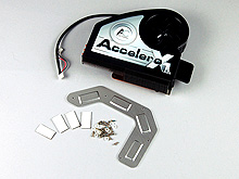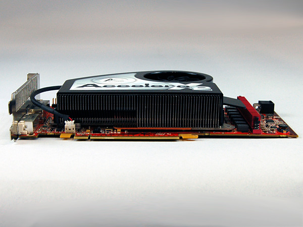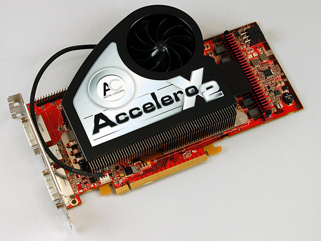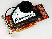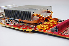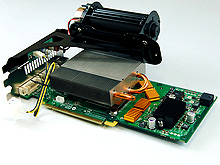 こちらはRadeon X1800/X1900シリーズ用となるZAV-Accelero X2。対応するグラフィックスカードが異なるだけで,冷却機構や取り付けの容易さはZAV-Accelero X1と同じだ。唯一異なるのは,ファンの回転数は2000rpm固定となっている点。放熱フィンにはダクトが被せてあるので,カード下ならびにレギュレータ部から60mm角ファンへと風が抜ける構造になっている。