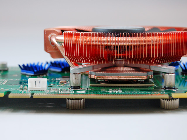 そして,主にこの問題へ対処すべく,グラフィックスカード用の交換用クーラーというものが販売されている。本稿では以下,これをGPUクーラーと呼ぶが,こういったGPUクーラーは,大型のファンやヒートシンクなどからなり,カード標準のクーラーよりも,小さな駆動音と高い冷却能力を期待できる。