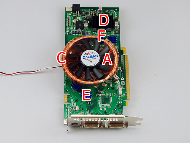 グラフィックスカードのどこを測定するかだが,今回はポイントを5点6か所に絞ってみた。具体的には以下のとおりだ。