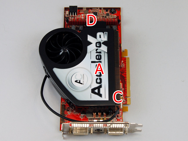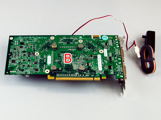 | ZAV-Accelero X1/X2の温度測定ポイント(※写真はRadeon X1900 XTXリファレンスカード&ZAV-Accelero X2)