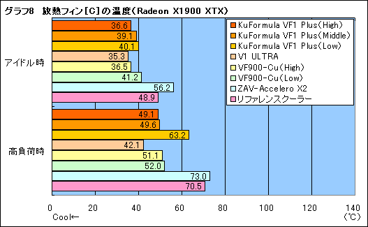 グラフ7,8は実際に放熱を担当するフィン部(C)の温度をまとめたものだ。