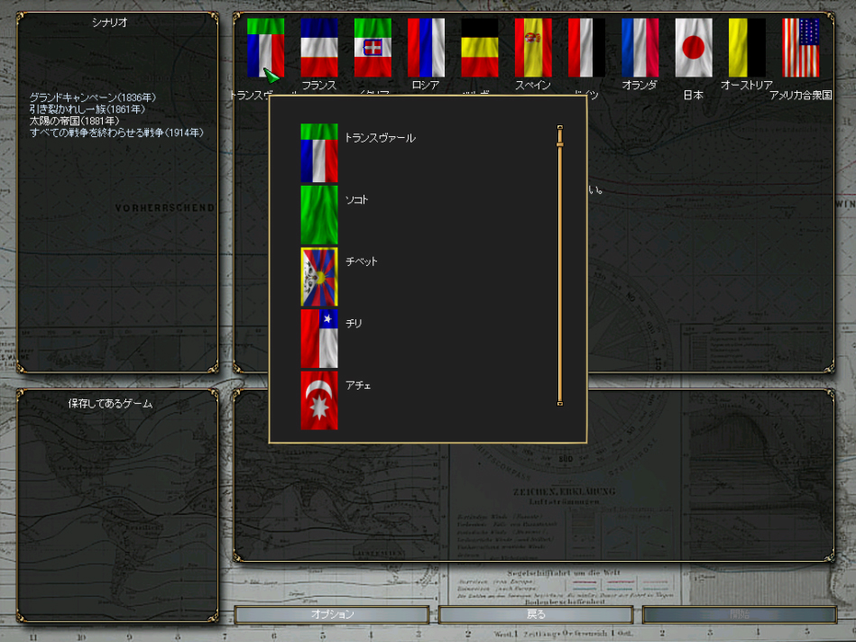 | 選択できる国家の数は膨大。最初から列強を選んでしのぎを削るのも面白いが,自分の手で一から国家を富ませていくのも面白い |