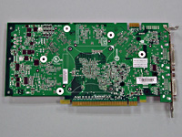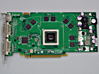 さて,カードを見てみよう。7800GTグラフィックスチップの周囲をメモリチップが囲むレイアウトは見慣れたものだ。メモリバスは7800GTXと同じ256bit。カードの表側に8枚のメモリチップを搭載し,グラフィックスメモリ容量256MBを実現している。下に掲載した写真を見てもらうと分かるが,7800GTXのリファレンスカードにはあった空きパターンが7800GTのリファレンスカードにはないため,グラフィックスメモリ容量は256MBまでとなる。この仕様変更のためかどうか,カード長は7800GTXより10mmほど短い。
