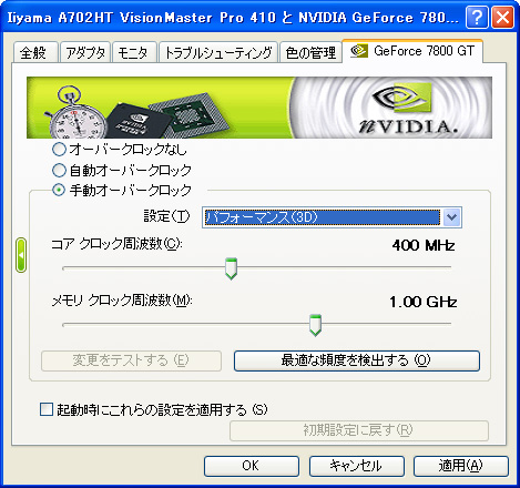 | 念のため,CoolBitsを有効化して,動作クロックを確認してみた |