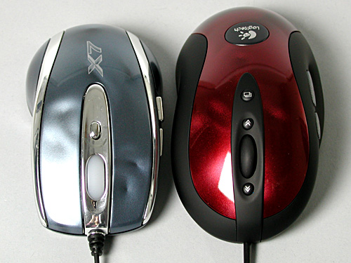 4Gamerの「比較用リファレンス」となる「MX510 Performance Optical Mouse」(いずれも右側),サイズを比較してみた。全体的に二回りは小さな印象 |