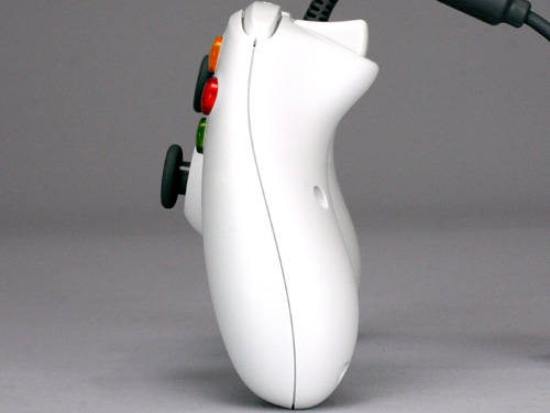 初代Xboxパッドには北米版と,北米版よりも小型の日本版という,手のサイズを考慮した2パターンが用意されていたが,「日本版でもまだ大きい(厚い)」と思っていた人は少なくなかったと記憶している。しかしXbox 360パッドは,握った瞬間の違和感が少ない。多くの日本人の手にしっくりきそうな仕上がりである。