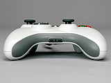 正面から見た形こそ,初代Xbox用パッド(右の写真中央)とほぼ同様だが,左右のグリップ部分とパッド中央部がかなりスリムになった。これは初代Xbox用パッドにあった二つの拡張スロットがごっそり削られたためで,このシェイプアップが結果的に抜群のホールド感を生んでいるのは評価したい。初代Xbox用コントローラを使っている人のために追記すると,アナログトリガーが初代Xbox用コントローラのそれよりも高い位置に配されているため,親指と人差し指をぐいっと開く,あの妙なストレスもなくなっている。