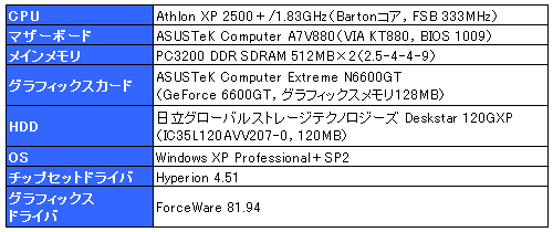 なお,テストに用いたPCの環境は表にまとめたとおりだ。