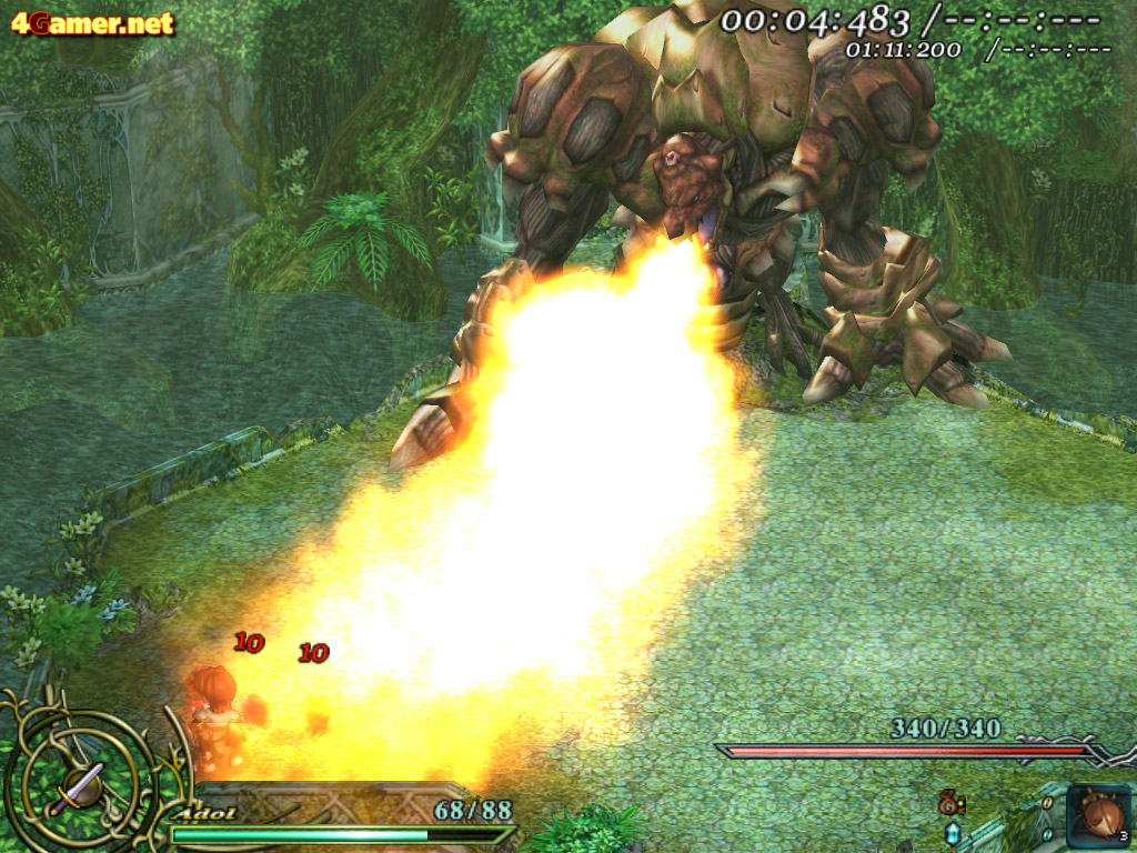 アドルの戦闘力やツールが限定されているタイムアタックモードでは,序盤のボスが相手でも決して気を抜けない。攻撃パターンやアルゴリズムが変更されているボスも多いので,好タイムを狙うにはかなりの練習が必要だろう |