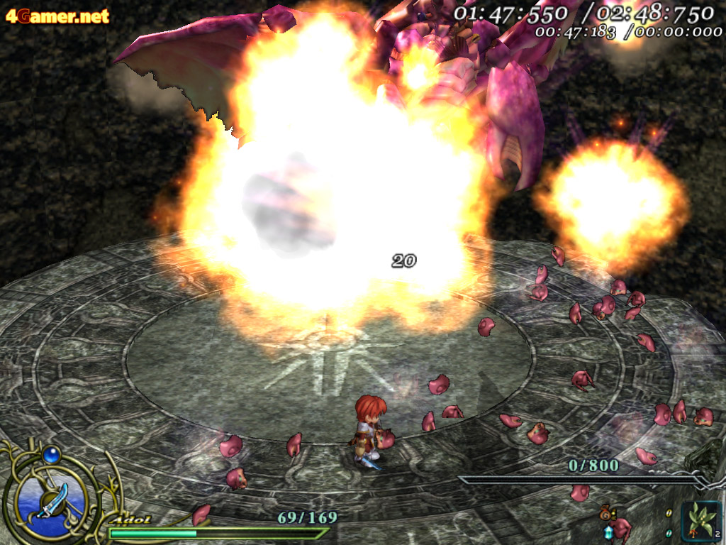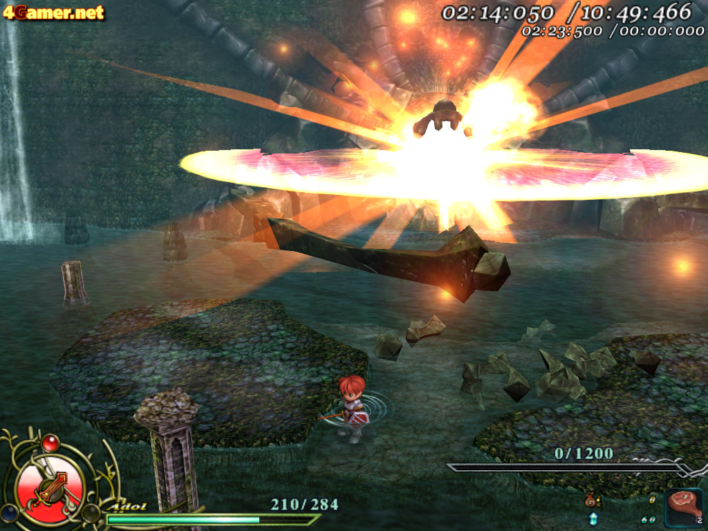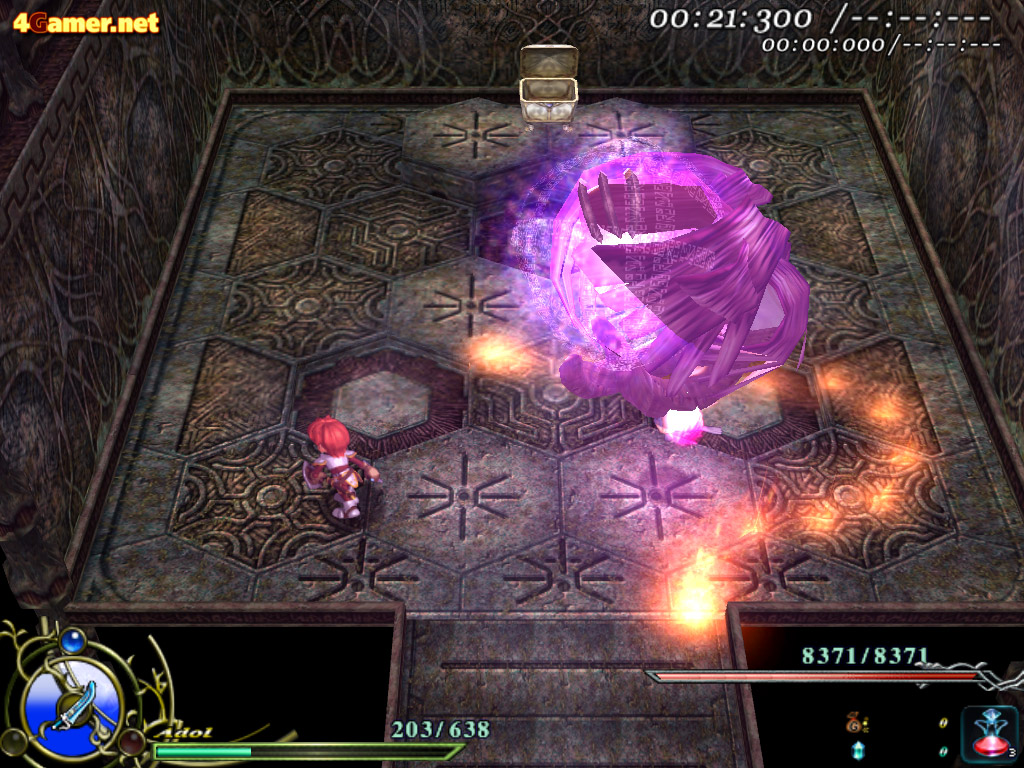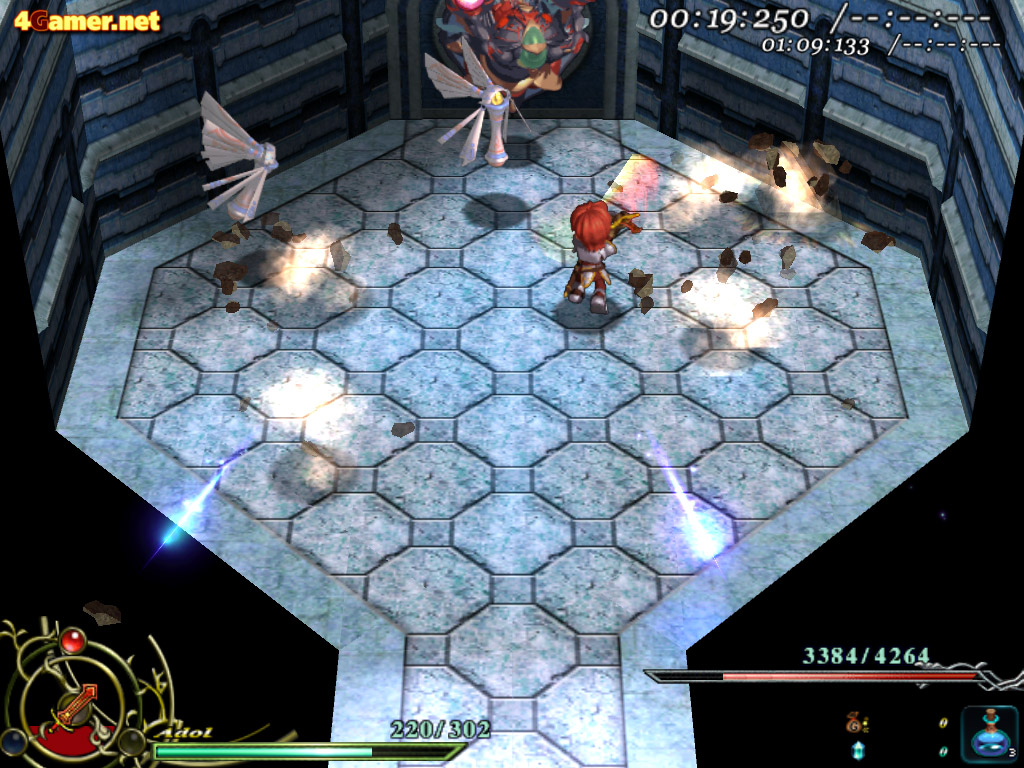 | ボスラッシュモードでタイムを縮めようと思ったら,些細なミスも許されない。アドルのHPが0になってもゲームオーバーにはならないが,合計時間はどんどん増えていってしまうので,ノーミスクリアを狙いたいところ |