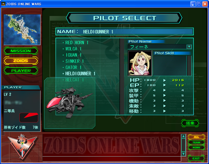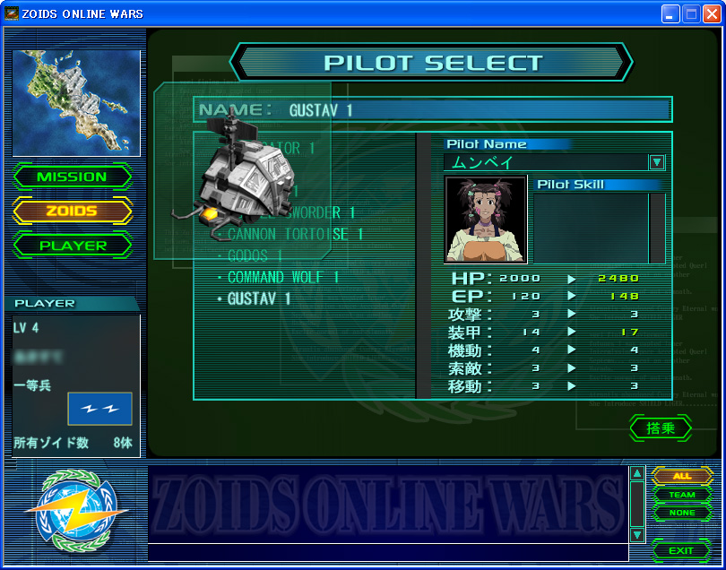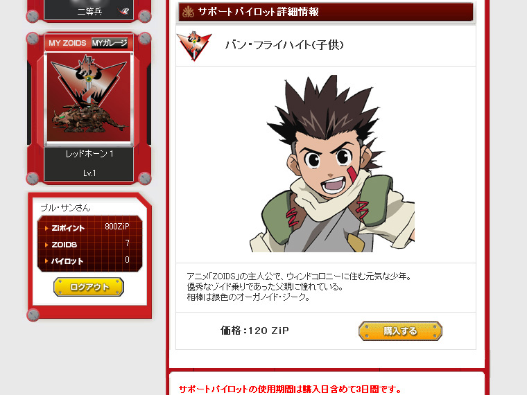 サポートパイロットの能力は,さすがアニメの主人公クラスというだけのことはあり,彼らを搭乗させるとZOIDSの性能が通常の兵士を乗せたときに比べて格段に上昇する。シングルプレイをとことんやりこめば,素のZOIDSやアバターの乗ったZOIDSの能力もサポートパイロット並になるが,いかんせん時間がかかる。それに,レベルの高いZOIDSにサポートパイロットを乗せれば,さらに性能が上乗せされるのだから,これを使わない手はない。