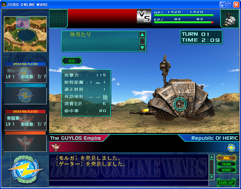 これからは,まずミサイルを装備できる敵ZOIDSを見つけしだいそれを最優先に攻撃。ミサイルの撃ち合いで,先に敵ミサイルZOIDSを全滅させた側が王手ということなりそうだ。