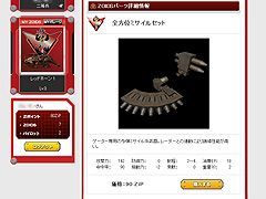 「ショップ」でも,換装パーツに新型が多く追加され,カスタマイズのレベルから戦略を考えることができるようになった。ただし,アバターの価格は30ZiPと以前のまま。仕様にも変更はなく,ZOWのマップ上で,兵士やサポートパイロットの顔は見られても,アバターの顔かたちは自分のものも含めて見られなかったのは残念だ。