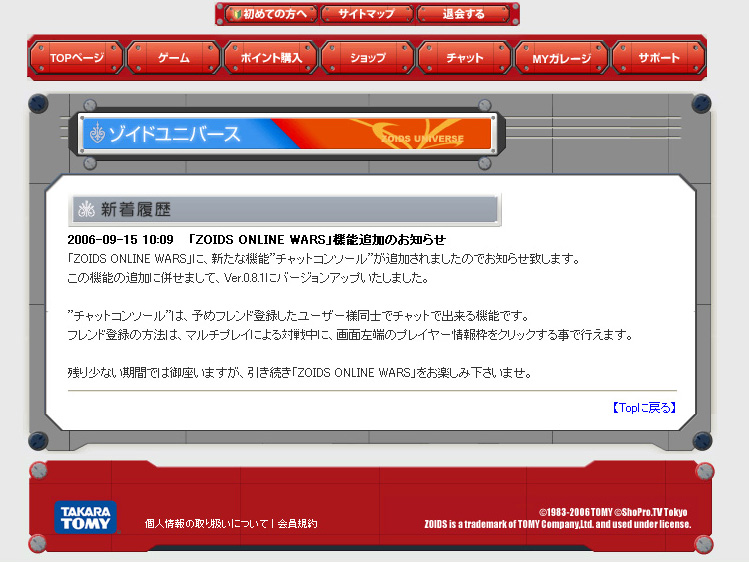 タカラトミーによるZOIDSのポータルサイト「ZOIDS UNIVERSE」(以下,ZU)とオンラインストラテジー「ZOIDS ONLINE WARS」(以下,ZOW)では,明日(10月17日)開始予定のオープンβサービスに向けての準備が進められている。