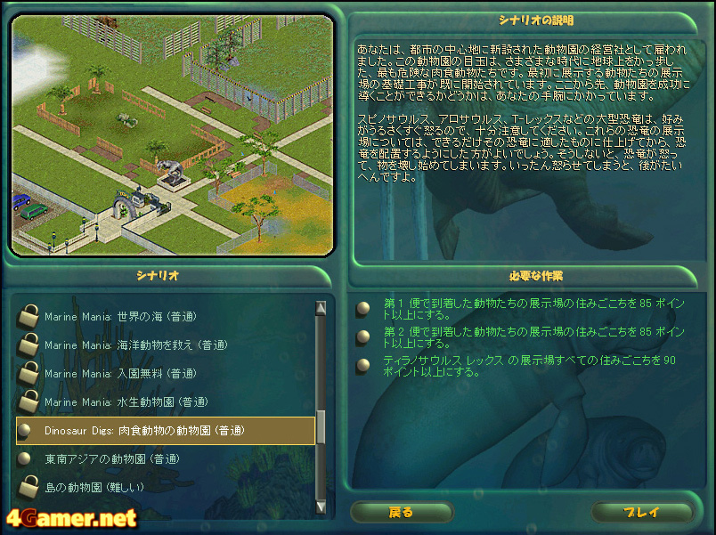 欧米では,ズー タイクーンに導入することで,水族館にまで手を広げられる"マリン マニア"(海洋動物)と,恐竜を飼育/展示してジュラシック・パークのような動物園を作れる"ダイナソー