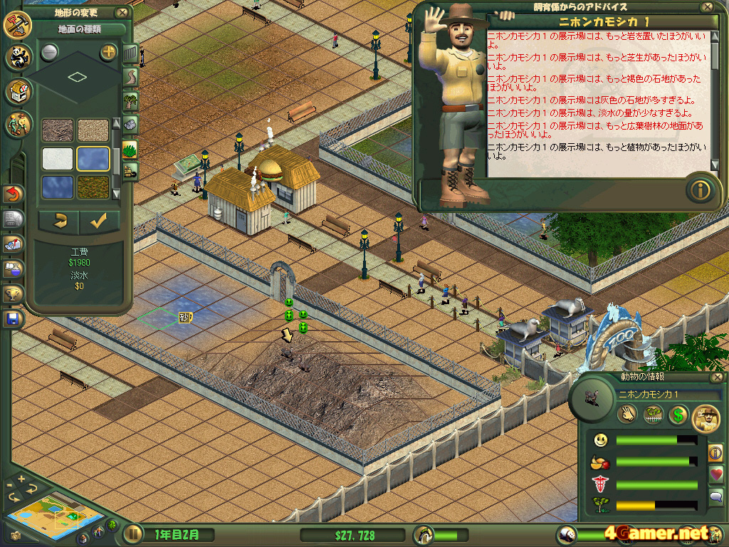 ズー タイクーンで不評だったメンテナンス員は,細かく仕事を指定することが可能となり,かなり"使える"ようになった。この変更だけでもズー