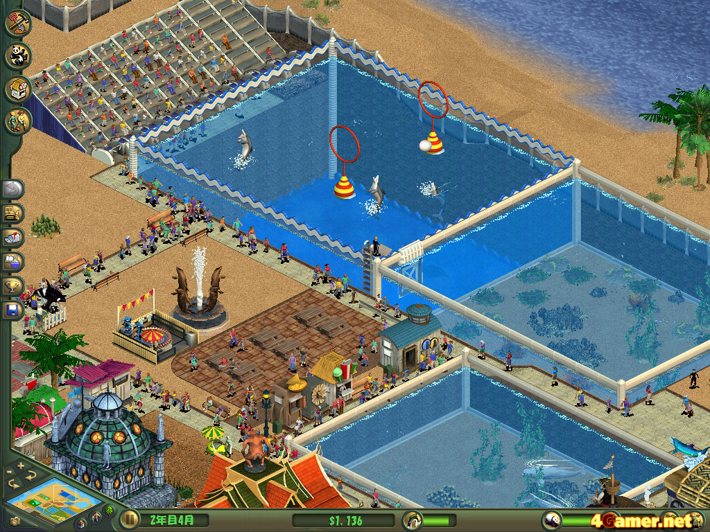それ以外にも,ズー タイクーンよりもスタッフの育成,病気の治療,アトラクションの開発,ショウアイテムの開発,遺伝子研究などの研究保護活動への出資が重要なので,資金繰りに頭を悩ますことになる。まずは人気の高い動物(ライオンなど)を展示し,ある程度の収入を得られるようになってから,マリン