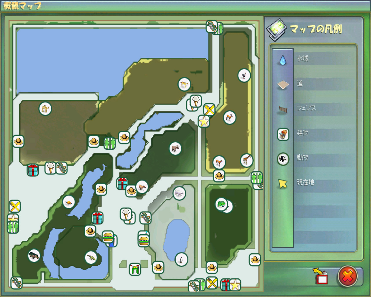 | 上の2点は筆者がプレイしたある動物園の例だが,最初のさびしい状況から大きく発展したことが分かると思う。このように園が発展すればするほど愛着が湧いて,やめられなくなるところが経営系SLGの醍醐味といえる |