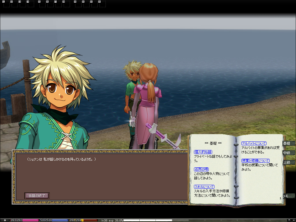 船はリアルタイムで6分ごとに一度出航し,船の出発から到着までには3分かかります。その3分間にはチャットが可能で,NPCとの会話も楽しめます。運賃は100ゴールドですので,気楽に大陸間を行き来できます。