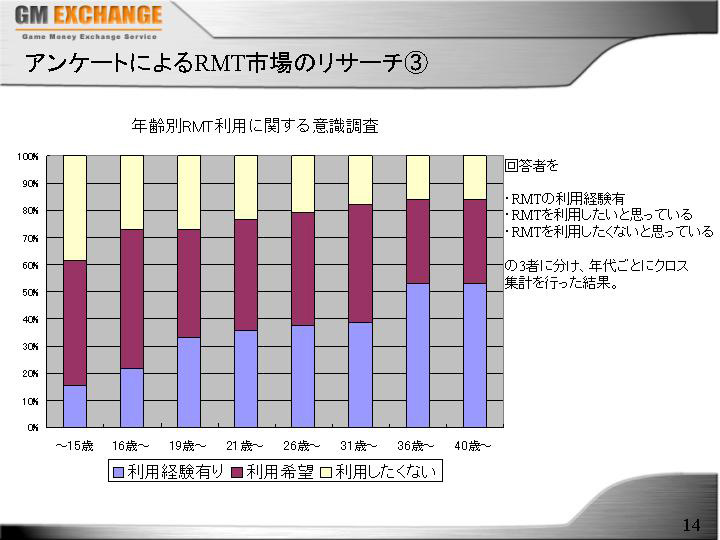 そうなった場合,RMT業者は成り立たないですよね? 今度は経営者として聞くんですが,自分達の持っているゲーム内通貨が,明日無価値になるリスクには,どう対応するんですか?