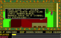ご存じ,「イース」の1作目。当時のPCゲーマーにとって,ドラゴンスレイヤーシリーズは,その挑戦しがいのある難度の高さも魅力の一つだったが,逆に難度を低くすることで,幅広い層に支持を得たのがイースである