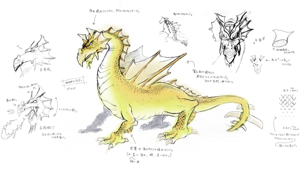 「呪われたオアシス」については,ボスのゴールドドラゴンのデザイン原画と,3Dモデルが出来上がったところですね。