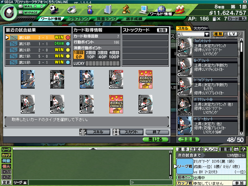 実は1stだと,一人でも十分遊べたんですよ。最初は苦しいけど,少しがまんすれば,なんとかなりました。今のバージョンは,あえて一人だとつらくなるようにしています。カードや選手をトレードしていかないと行き詰まりを感じると思いますよ。