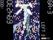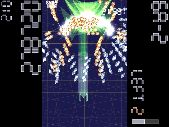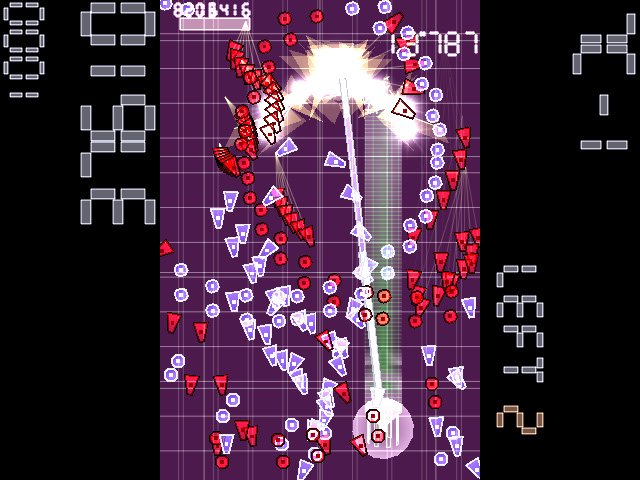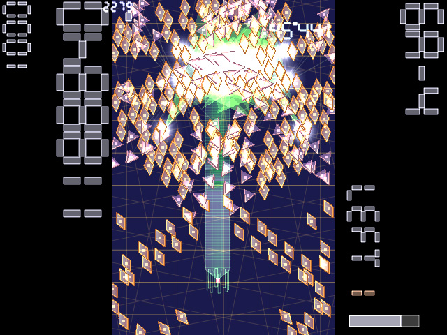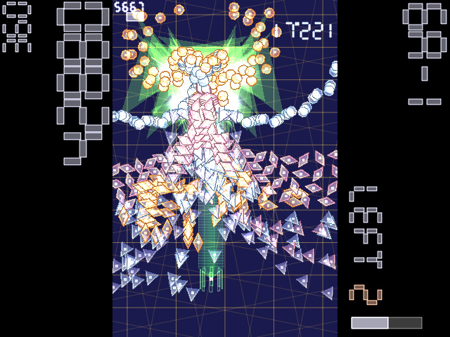 どこまでもシンプル。それが「rRootage」の美学だ。ワイヤーフレームのみで構成されたコントラストの強い画面は,余計なオブジェクトで気を惹かないぶんプレイヤーを奥深くへ引き込み,「ひたすら弾を避け続ける機械」へと変える。 rRootageのミニマムかつ統一感のある雰囲気に,大きく貢献しているのがBGMだ。名作といわれるシューティングゲームには必ず印象的な曲があって,それを聴いただけで「あぁ,あのゲーム」と分かるものだが,rRootageの場合事情は少々異なる。「テーマ曲」としてではなく,まさにBGM,雰囲気作りの一環として秀逸なのだ。 弾幕シューティングというと,とにかく難しいものと思われがちだが,rRootageには大まかに9段階のレベル設定が用意されている。最も低いレベルに設定すれば,「どうもシューティングは苦手」と思っている人でも,ちょっとした練習でクリアできるようになる。少々古いたとえだが,初代「ツインビー」の1面くらいといえばいいだろうか。 難易度とは別に「NORMAL」「PHY」「IKA」「GW」という四つのモードを備えているのも,rRootageの大きな特徴だ。NORMALはボム&自機スピード可変の標準仕様,PHYは「グレイズメーター」という"かすりパワーアップシステム"を導入した「サイヴァリア」風,IKAは自機と敵弾が白/黒の属性を持ち,同じ属性の敵弾を吸収できる「斑鳩」風,GWは敵の弾を跳ね返す「リフレクター」を備えた「ギガウイング」風となっており,遊び心もなかなかのもの。今から弾幕シューターとして修練を積むなら,全ステージクリアまでたっぷり1年は遊び倒せるはずだ。 いきなり高いレベルを目指さなくても,自分にとってちょうど面白い難易度設定,つまり「何回かに一度はクリアできる」程度の設定はすぐに見つかるだろう。それを探して,まずはゲームと一体化してみほしい。繰り返しになるが,そのためにはサブウーファがあると効果的だ。 「こちら」のABA Gamesのサイトでは,このほかさまざまな作品が配布されている。rRootageに魅力を感じた人は,レトロモダンハイスピードシューティングこと「PARSEC47」,アブストラクトシューティングこと「Noiz2sa」も併せて試してみるといいだろう。 (佐々山薫郁)