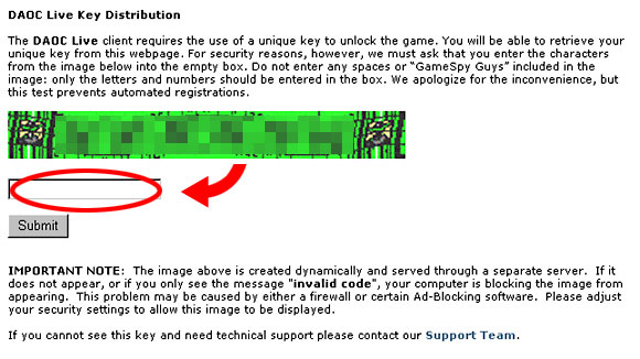 ダウンロードしたクライアントを起動すると,インストール途中でブラウザが開いてFileplanetの専用ページが開くはず。ブラウザ上にはグラフィックスで6ワード程度の文字列が表示されているので,その文字列をブラウザ上の入力スペースにタイプすると,ゲームの起動に必要なunique