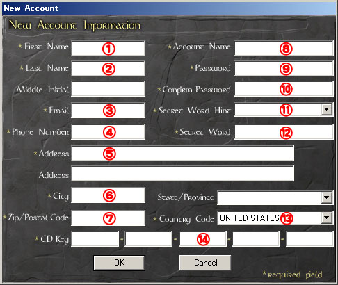 keyを入力しよう。とはいえ,まだゲームはプレイできない。最後にゲームアカウントの作成があるのだ。起動画面でNewAccountを選択して※印の場所を入力し,次にクレジットカードの情報を入力すれば登録完了となる。