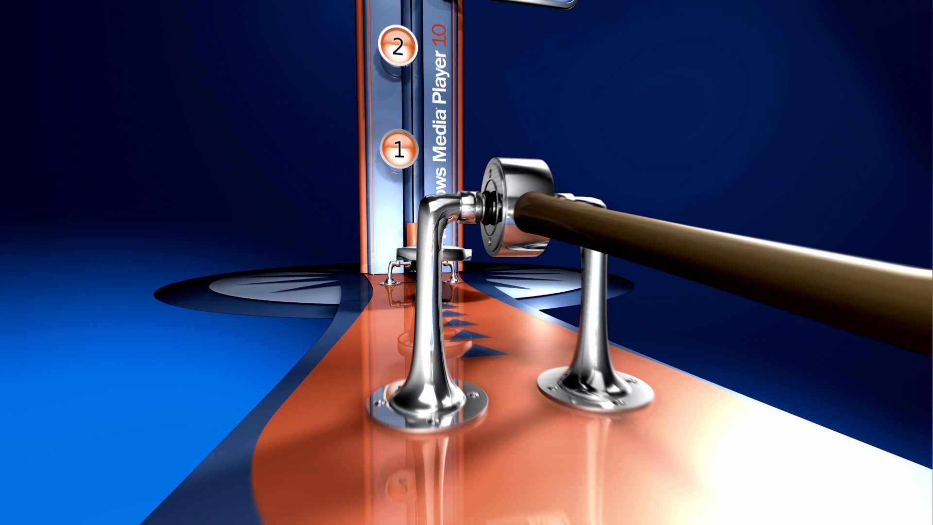 Windows Media Player 10のデモムービーより。このムービーは「WMV 高精細コンテンツ ショーケース」にある「Striker Windows Media Player 10」というものだが,解像度は1920×1080ドットあり,再生してみると,相当に負荷が高いのが分かる