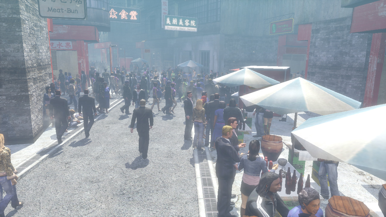 国森:確かに,影生成についてはかなり凝ったものになっていますね。UE3の機能として提供されているものなので,どういうときにステンシルシャドウボリューム技法やシャドウマップ技法が使い分けられるのか,はっきりとしたことまではお話できないのですが。ただ,人物のセルフシャドウはもちろんのこと,ビルが落とす影が,太陽の位置によって変わったりしますし,もちろん伸びたり縮んだりもします。