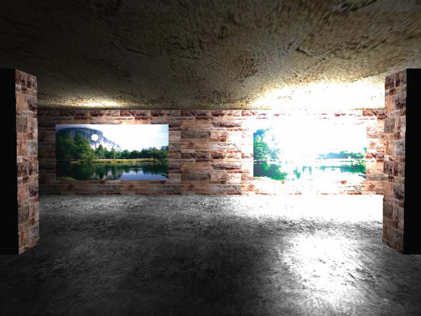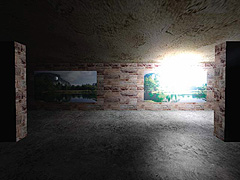 全体的な陰影の立体感が増しただけでなく,窓からの光,天井から見える空からの太陽光,そしてそれを受ける壁の輝きがブルームを起こし,光の存在感がある |