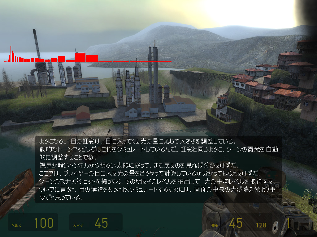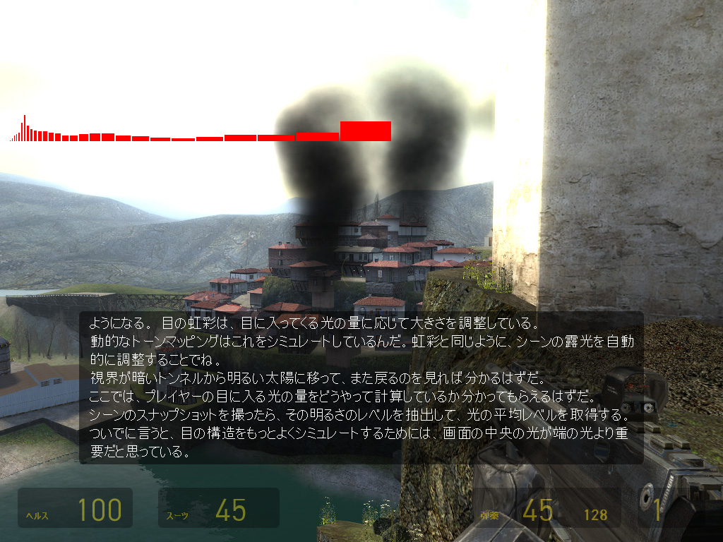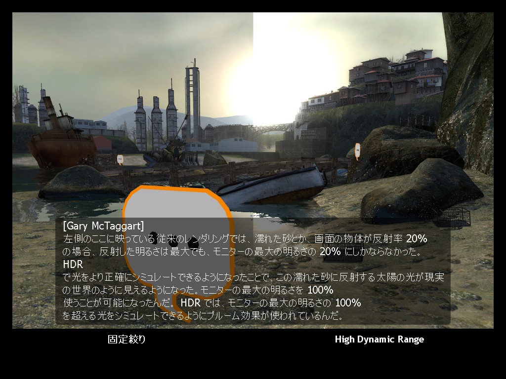 HL2LCのアピールポイントは,まだ実装例の少ない,本当のHDRレンダリングを実装したことに尽きるのだ。