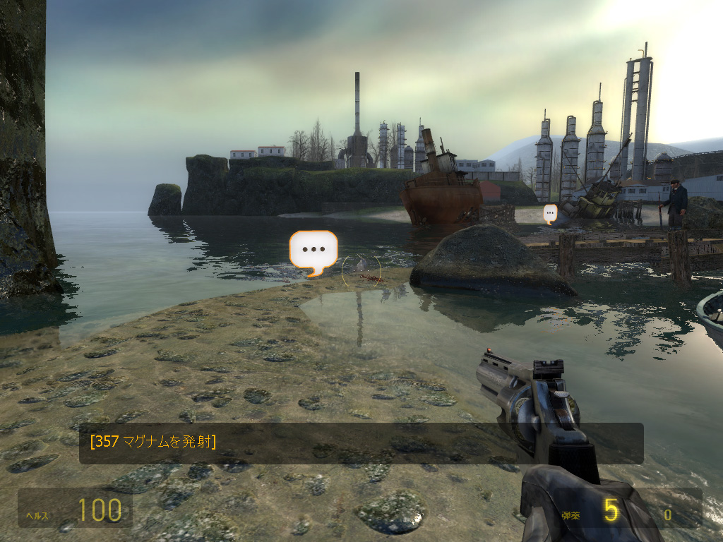 この吹き出しマークに照準を合わせて「アイテム使用ボタン」(デフォルトでは「E」)を押せば,開発者による技術解説や,作り込みに際してのこだわりを聞くことができる。HL2本編同様,日本語字幕が出るので,英語力にあまり自信がなくても大丈夫だ。