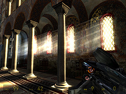 HL2LCだと,動的なトーンマッピングの効果もあって,光があふれ出すライトブルームはほんの数秒間だけで,すぐに露出補正がかかって消えてしまうことが多い。ただ,これまでは,ライトブルームがあるだけで「HDRレンダリングだ」と言い張っていたわけだから,一歩進んだ表現法になったとはいえるだろう。
