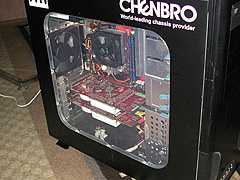 | 都内のホテルで行われた事前発表会では,Radeon X1900 CrossFire Editionを利用したCrossFire動作デモ機が公開された |