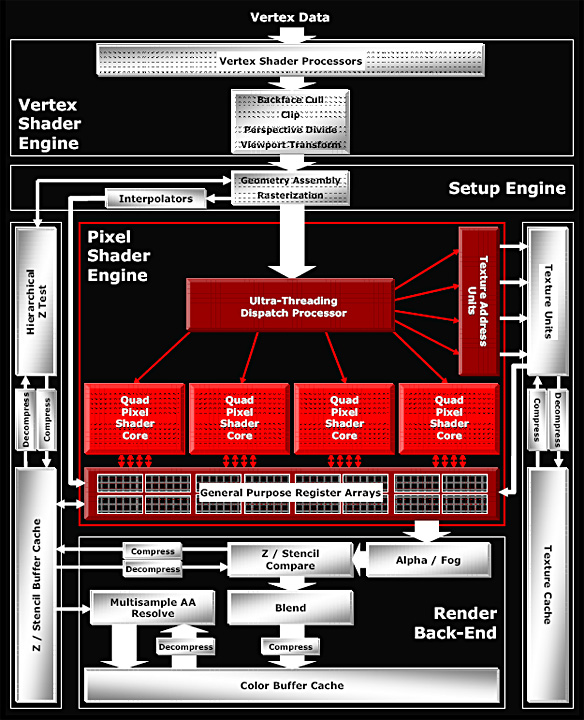 3倍に増えたピクセルシェーダユニットばかりが注目されがちだが,Radeon X1900では,2006年1月現在における,3Dアプリケーションの要求に応える形で,さまざま改善が施されているとATIは主張している。