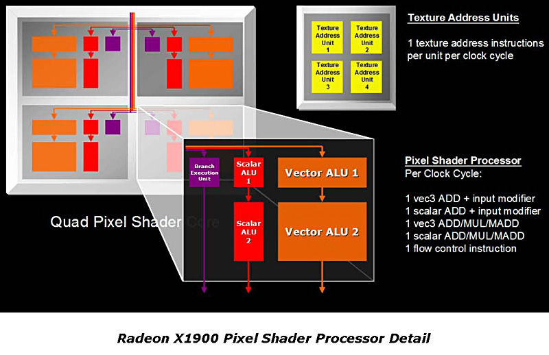 NVIDIA寄りの海外コミュニティの一部からは「Radeon X1900のピクセルシェーダユニット数は16基のままで,ピクセルシェーダが内包するALU(Arithmetic and Logical Unit,算術&論理計算ユニット)の個数で数え直しただけ。単なる数字のマジックだ」という反論があった。これについてTaranovsky氏は,「Radeon X1800シリーズ相当のピクセルシェーダユニットが48基に増強されている」と,これを公式に否定している。